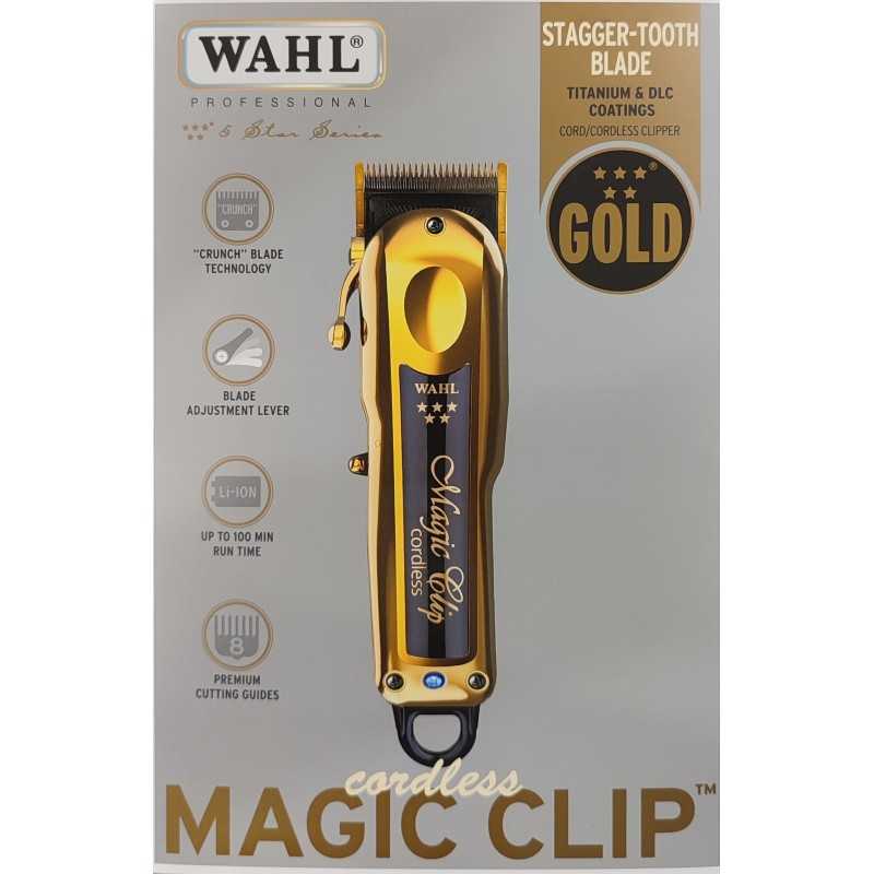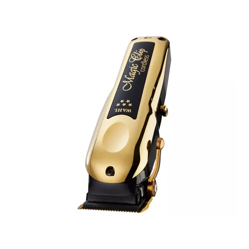 ماشین اصلاح وال مجیک کلیپ طلایی 5 ستاره حرفه ای Magic Clip Cordless Black & Gold یکی از پر قدرت ترین ماشین های اصلاح حرفه ای با باطری قوی که تا 100 دقیقه اجرا را برایتان به ارمغان می آورد و تیغههای بسیار قوی، مقاوم در برابر خوردگی دارد که دمای تیغهها را پایین میآورد و این خصوصیت را به عنوان جادو تیغه مطرح کرده اند.
