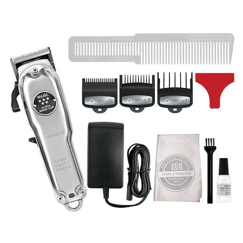 ماشین اصلاح سر و صورت وال مجیک کلیپ متال ادیشن Wahl 5-Star Cord/Cordless Magic Clip Metal Edition 8509 از کلاس تجاری محصولات Wahl Professional است. ماشین اصلاح سر و صورت Magic Clip Cord/Cordless 8509 برای استفاده حرفه ای در نظر گرفته شده است و عملکردی بسیار عالی و تند دارد.