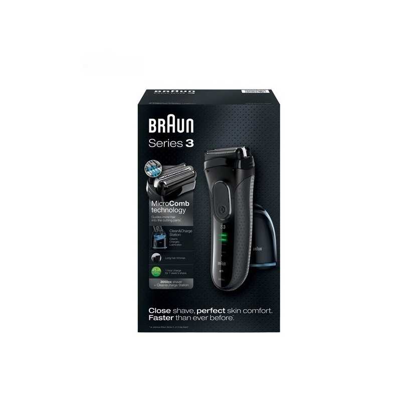 برای حفظ کارایی ماشینهای اصلاح، لازم است که به شکل مرتب تیغهها و سر دستگاه تمیز و در صورت نیاز روغنکاری شود. بسیاری از ماشینهای اصلاح را میتوان بهراحتی زیر آب گرفت و تمیز کرد، اما شرکتهای تولیدکنندهی این دستگاهها، این کار را راحتتر هم کردهاند و پایهی تمیزکنندهی خودکار ماشین اصلاح را همراه بعضی از مدلهای خود ارائه میدهند. ماشین اصلاح «3050cc» ساخت شرکت براون (Braun) نیز دارای پایهی تمیزکنندهی مخصوصی است که کار شستشو و خشککردن آن را به شکل اتوماتیک انجام میدهد. این ماشین اصلاح با داشتن سری فویلی طراحیشده با تکنولوژی «MicroComb» با هر بار حرکت روی صورت، موهای بیشتری را قطع میکند و به این ترتیب سرعت اصلاح بیشتر شده و نتیجهی اصلاح هم رضایتبخشتر میشود. ماشین اصلاح دو عدد تیغهی فویلی و یک تریمر در میان آنها دارد که هر سه در جای خود قابلیت حرکت عمودی دارند و در تماس با پوست، مخصوصاً برای نقاط انحنادار صورت مثل چانه و زیر گردن، این انعطافپذیری موجب اصلاح راحتتر این نقاط میشود. سریهای فویلی دارای طراحی خاص لانه زنبوری موسوم به «SensoFoil» هستند که باعث میشوند تیغهها با قطع موهای هرچند کوتاه موجب اصلاحی از ته شوند. هنگام اصلاح صورت، نقاطی مانند خطریش وجود دارد که باید توسط خط زن آنها را مرتب کرد. خوشبختانه برای این کار خط زنی متصل به دستگاه در پشت ماشین اصلاح قرار داده شده است که با فشار از پایین به بالا، بیرون میآید و آمادهی استفاده میشود. ماشین اصلاح 3050cc دارای باتری قابل شارژ است که استفاده از آن را راحتتر میکند. برای شارژ کردن دستگاه یا میتوان از اتصال مستقیم آدابتور برق به انتهای دستگاه استفاده کرد و یا آن را داخل پایهی شستشو و شارژ قرار دارد. شارژ کامل دستگاه 1 ساعت طول میکشد و پس از آن به مدت 45 دقیقه میتوان به شکل بیسیم از دستگاه استفاده کرد. برخلاف بعضی از ماشینهای اصلاح، 3050cc در حالت اتصال به پریز برق هم کار میکند. اگر شارژ دستگاه تمام شود و مایل به استفادهی بیسیم از دستگاه باشید، میتوانید با 5 دقیقه شارژ کردن، انرژی لازم برای یک اصلاح کامل را ذخیره کنید. روی بدنه ماشین اصلاح سه نشانگر مربوط به باتری وجود دارد که نشاندهندهی میزان باتری، حالت شارژ شدن و باتری رو به اتمام هستند. باید توجه داشت که هنگامی که دستگاه خیس است از اتصال آن به شارژ خودداری شود. بعد از هر بار استفاده یا زمانی که نشانگر روی ماشین اصلاح روشن شود، میتوان آن را داخل پایهی شستشو قرار دارد، به این ترتیب قدرت برش تیغهها حفظ میشود و سر ماشین اصلاح تمیز باقی میماند. پایهی شستشو کارتریج مخصوصی دارد که عمر محدودی داشته و باید تعویض شود. برای محافظت از تیغهها حین جابجایی میتوان از محافظ مخصوصی که همراه دستگاه ارائه شده استفاده کرد. به طور کلی Braun 3050cc دارای دو تیغهی فویلی، خطزن متصل به دستگاه، نشانگرهای LED، منبع تغذیهی برق و باتری قابل شارژ، پایهی تمیزکننده و شارژ بوده و قابل شستشو است.