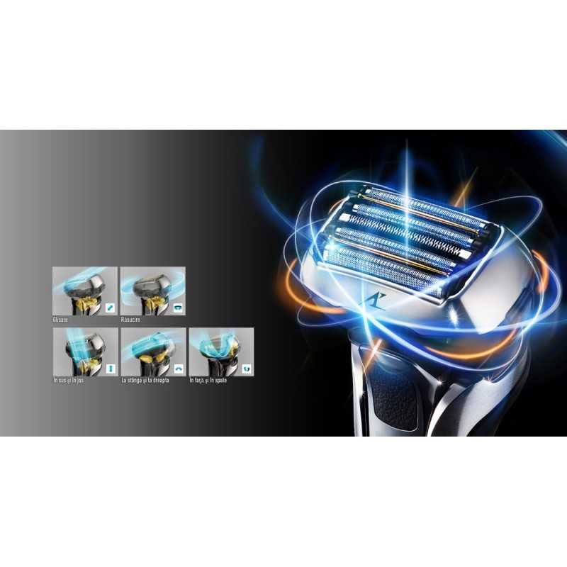 در میان سریهای فویلی، دو رول طلاییرنگ دیده میشود که به حرکت آسانتر سر دستگاه روی پوست کمک کرده و التهاب بعد از اصلاح را کاهش میدهند. به کمک موتور پرقدرت ریش تراش پاناسونیک سری Lamdash مدل ES-LV9Q که با سرعت ۷۰۰۰۰ دور در دقیقه و سرعت کات کردن ۷۰.۰۰۰ دور در دقیقه نوسان میکند، عملیات قطعکردن موها در کسری از ثانیه انجام میشود و در مدتزمان کوتاهی میتوان صورتی صاف و بدون تهریش داشت. این موتور، قدرت را با توجه به ضخامت مو به شکل اتوماتیک تنظیم میکند تا اصلاح نقاط حساس مانند گونه با قدرت کمتر و اصلاح موهای ضخیم مانند موهای چانه با قدرت بیشتری انجام شود. در نتیجه بعد از اصلاح، یکنواختی در همهی قسمتهای صورت دیده میشود. این مدل ماشین اصلاح ساخت ژاپن می باشد و تیغ های تیز آن از تکنیک شمشیر های سامورایی بهره برده است.