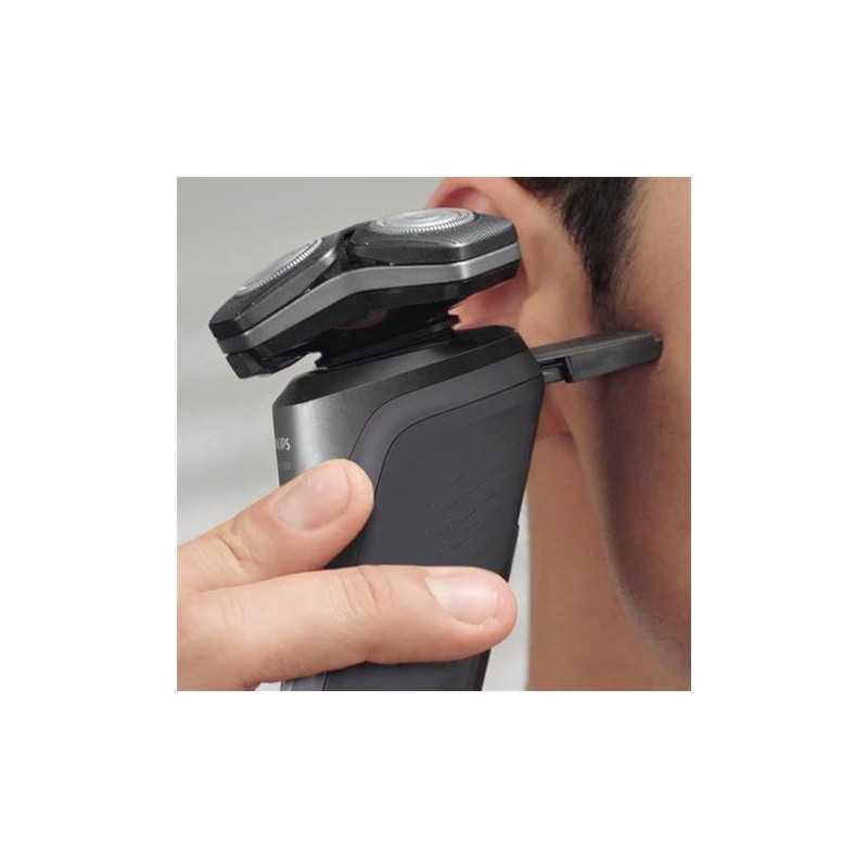 و همچنین دارای تیغههایی از جنس استیل ضد زنگ میباشد که این تیغهها با تکنولوژی برشی چرخشی کار میکنند و اصلاحی با شماره صفر را به وجود میآورند. تیغههای این دستگاه به خوبی تمامی موها را در هر اندازهای که باشند از ته کوتاه میکند. علاوه بر این برای این ریش تراش یک عدد سری خط زن با قابلیت نصب شانه بر روی آن نیز در نظر گرفته شده است.