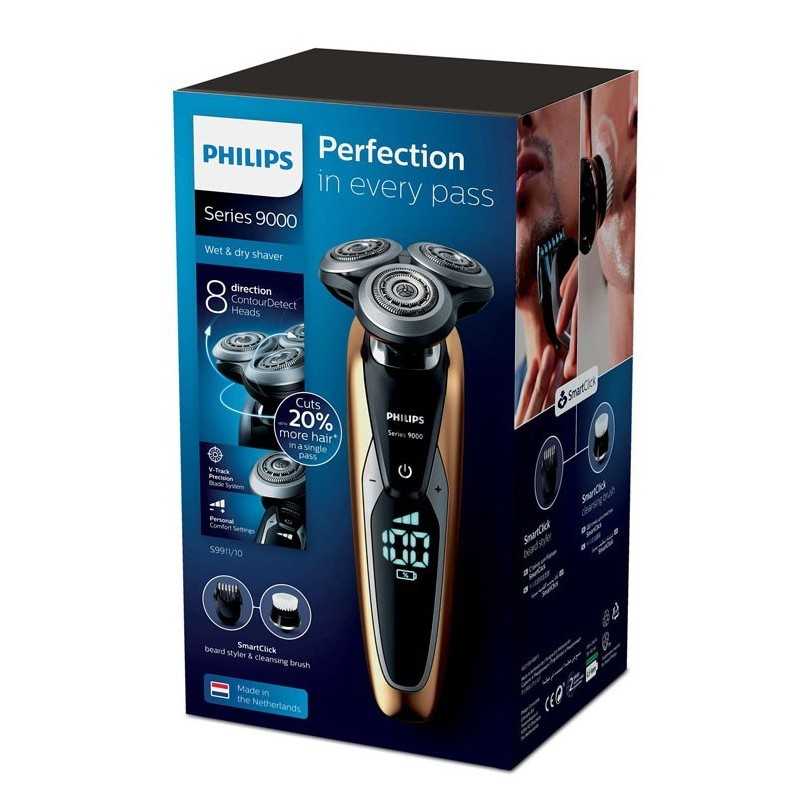 ماشینهای اصلاح سری 9000 شرکت «فیلیپس» (Philips) تا این لحظه کاملترین و پیشرفتهترین ریشتراشهای این شرکت مشهور هستند که تمام امکاناتی که میتوان از یک ماشین اصلاح داشت را در خود جمع کردهاند. در میان مدلهای سری 9000 مدل «9911» از پرچمداران است و با امکانات فراوان و البته ردهی قیمتی بالا میتواند انتخاب مناسبی برای افرادی باشد که توجه ویژهای به اصلاح صورت خود دارند. از مهمترین ویژگیهای این ماشین اصلاح میتوان به تیغههای V شکل آن اشاره کرد که موها را از اطراف به دام انداخته و به سمت لبهی بسیار تیز خود هدایت میکند. این طراحی خاص باعث میشود موها در حالت کاملاً ایستاده و از نزدیکترین نقطه به پوست قطع شود و نتیجهی آن اصلاحی از ته و بدون تهریش است. مهم نیست که موها حالت خوابیده داشته باشند و یا کمی بلند و کوتاه باشند، این تیغهها فرقی بین آنها نمیگذارد و همه را از ته قطع میکند. از تیغهها که عبور کنیم به پوشش روی آنها میرسیم که کاملاً شناور بوده و با توجه به انحنای صورت، عکسالعمل نشان میدهد. این قابلیت حرکت باعث میشود که سرعت اصلاح 20 درصد افزایش پیدا کند و نتیجهی اصلاح هم رضایتبخشتر میشود. طبق انتظاری که از یک ماشین اصلاح با این کیفیت میرود، این مدل هم قابلاستفاده به صورت خشک و مرطوب است و میتوان داخل حمام زیر آب گرم اصلاحی نرمتر و لذتبخشتر داشت. هنگام اصلاح میتوان سرعت موتور را در 3 شدت مختلف تنظیم کرد که کمترین سرعت مناسب پوستهای حساس و بیشترین سرعت مناسب اصلاح موهای ضخیم است. باتری قابل شارژ دستگاه از نوع لیتیوم یونی بوده و با یک ساعت شارژ تا 50 دقیقه شارژدهی دارد. درصد شارژ باقیمانده، نشانگر پاکسازی تیغهها، باتری ضعیف، قفل مسافرتی و مواردی دیگر روی صفحهنمایش دیجیتالی دستگاه نمایش داده میشوند. از دیگر ویژگیهای این ریشتراش باید به دو سری مختلفی که همراه آن ارائه شده اشاره کرد که شامل خط زن با شانه و برس پاکسازی پوست است. خط زن دارای یک شانهی اصلاح است که به کمک آن میتوان موهای صورت را در 5 اندازهی مختلف کوتاه کرد. بعد از اصلاح هم میتوان برس پاکسازی را جای خط زن نصب کرد و با یک مادهی شویندهی ملایم، پوست را شستشو داده و سلولهای مرده را از روی پوست زدود. این کار به افزایش جریان خون و کم شدن قرمزی پوست که برای عدهای از افراد بعد از اصلاح پیش میآید کمک میکند. در انتها باید به جایزهای که این مدل به دلیل طراحی زیبا و کارآمدش در سال 2015 از موسسهی iF دریافت کرد اشاره کرد. به طور خلاصه ریشتراش Philips 9911 دارای تیغههایی پیشرفته، سر شناور و متحرک، قابلیت استفاده به صورت خشک و مرطوب، سه سرعت قابل تنظیم موتور، باتری لیتیوم یونی، صفحهنمایش دیجیتال، خط زن و برس پاکسازی صورت و کیف نگهداری بوده و با امکانات فراوانی و کیفیت بالایی که دارد، از پیشرفتهترین ماشینهای اصلاح موجود در بازار است.